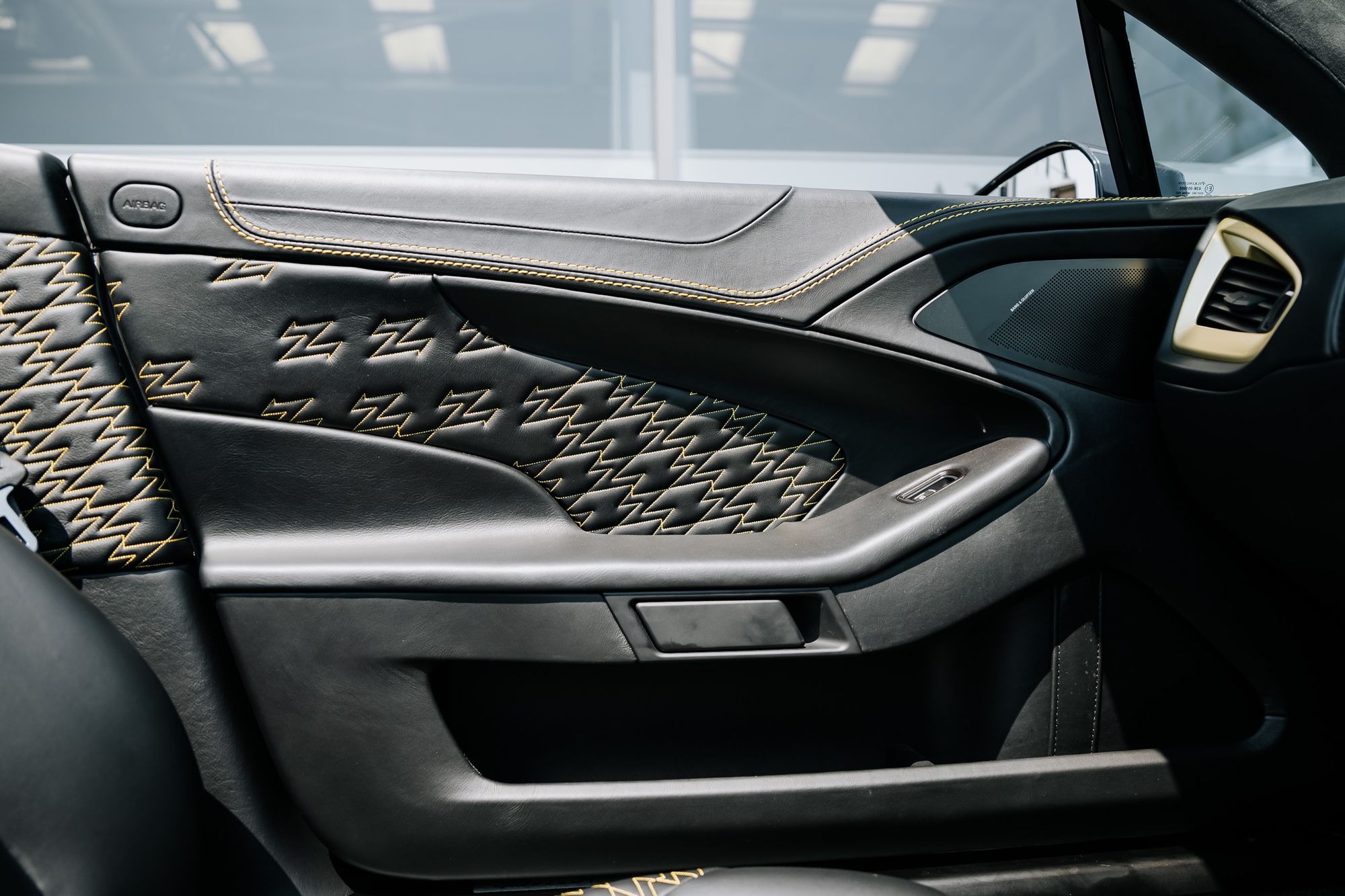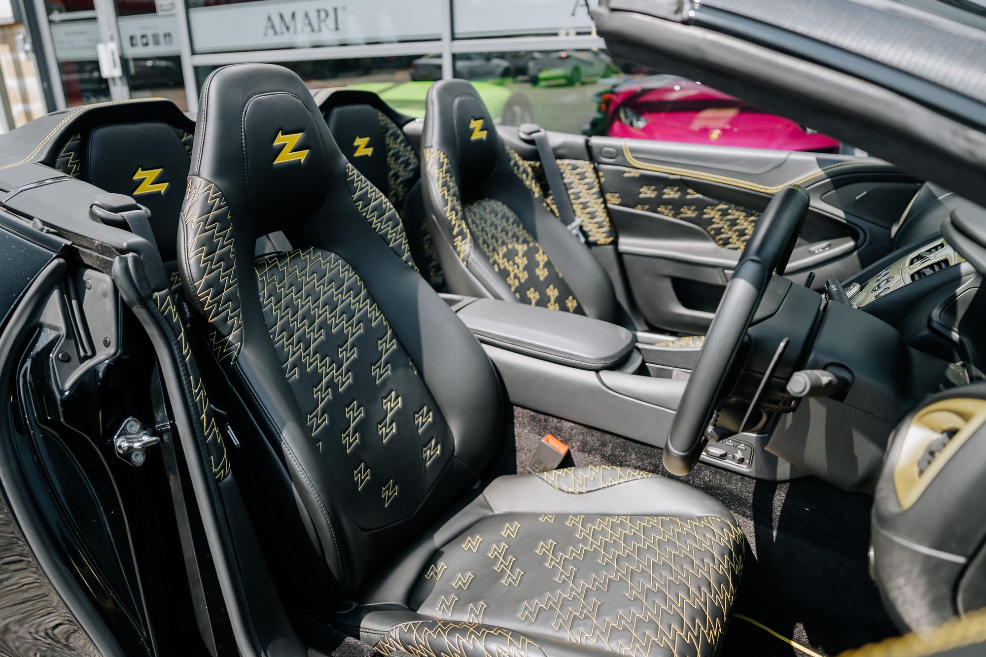 Limited to just 99 units worldwide, this Aston Martin Vanquish Zagato Volante is a rare gem. Adorned with brushed metal plaques displaying its exclusive number, '7 of 99', this car exudes exclusivity. The carbon fibre exterior has been meticulously re-sculpted, granting the already stunning Vanquish a more well-rounded and captivating appearance. Flowing lines and distinctive features, including the striking 3D 'Z' pattern front grille and the Vulcan-inspired 'blade' tail lights, elevate the Zagato's road presence to awe-inspiring levels. Underneath the captivating exterior, performance enhancements abound. The magnificent 5.9L V12 engine has been optimized for increased power, complemented by a dynamic suspension setup and lightweight cast magnesium door structures.