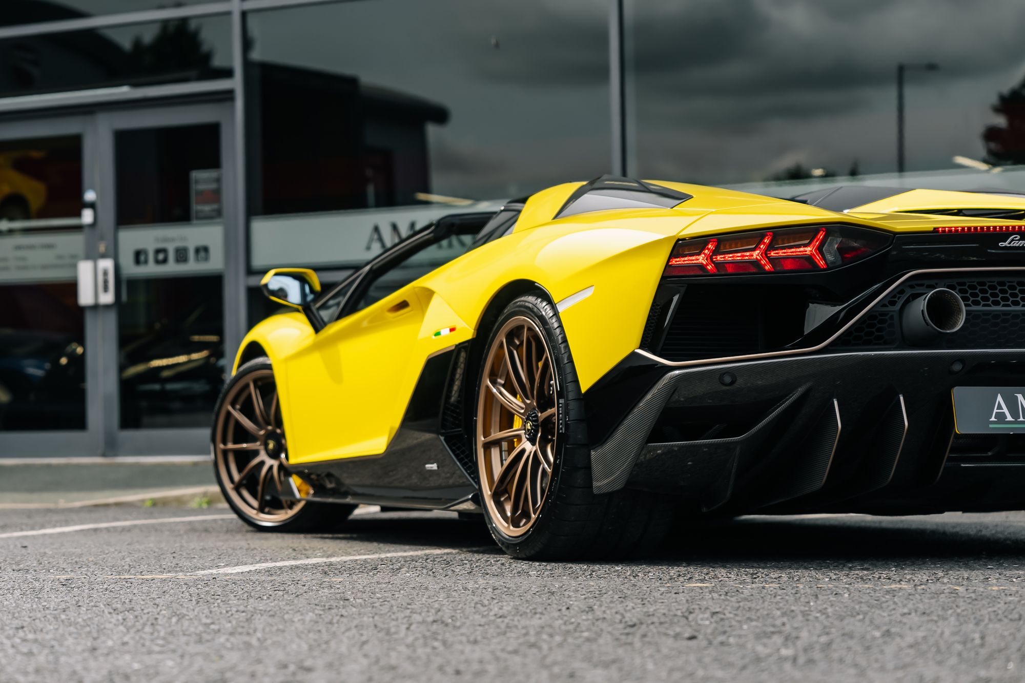Amari Supercars is delighted to offer this exceptional 2022 Lamborghini Aventador LP 780-4 Ultimae Roadster, registered in April 2022. This stunning supercar is finished in the vibrant Giallo Spica, with an interior adorned in Nero Alcantara, complemented by Bronzo and Giallo Taurus contrasts.