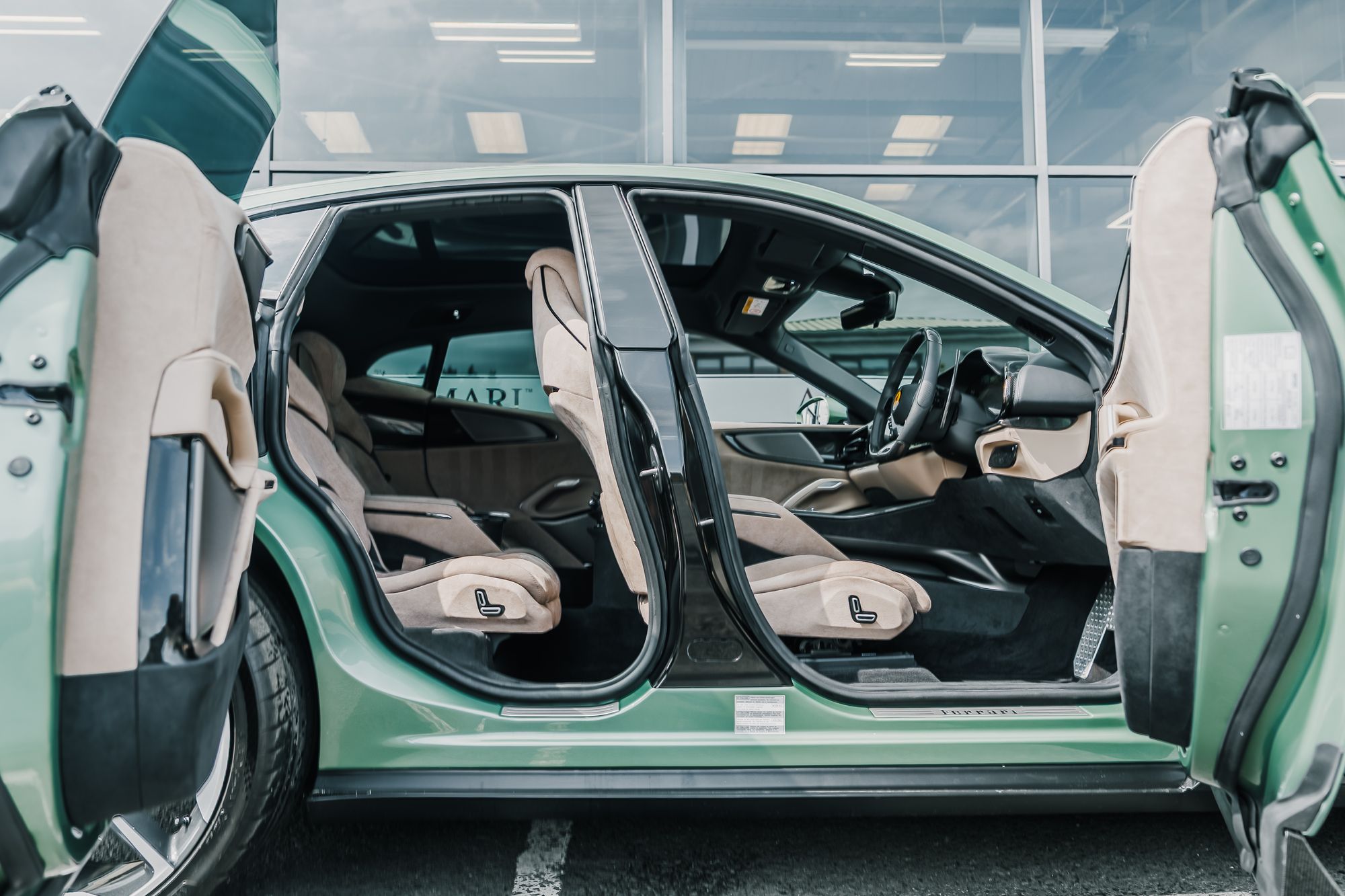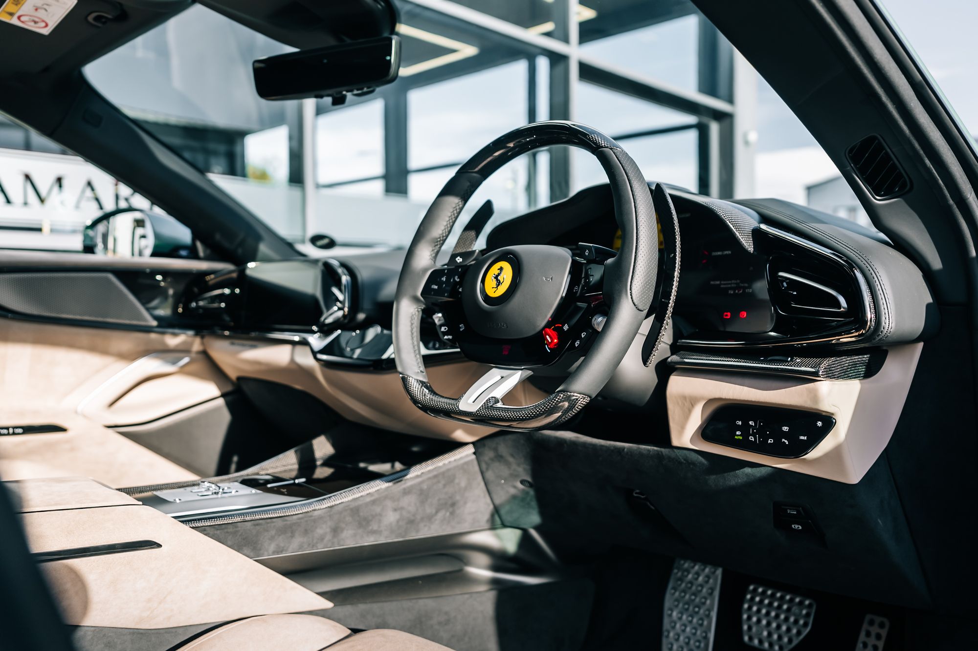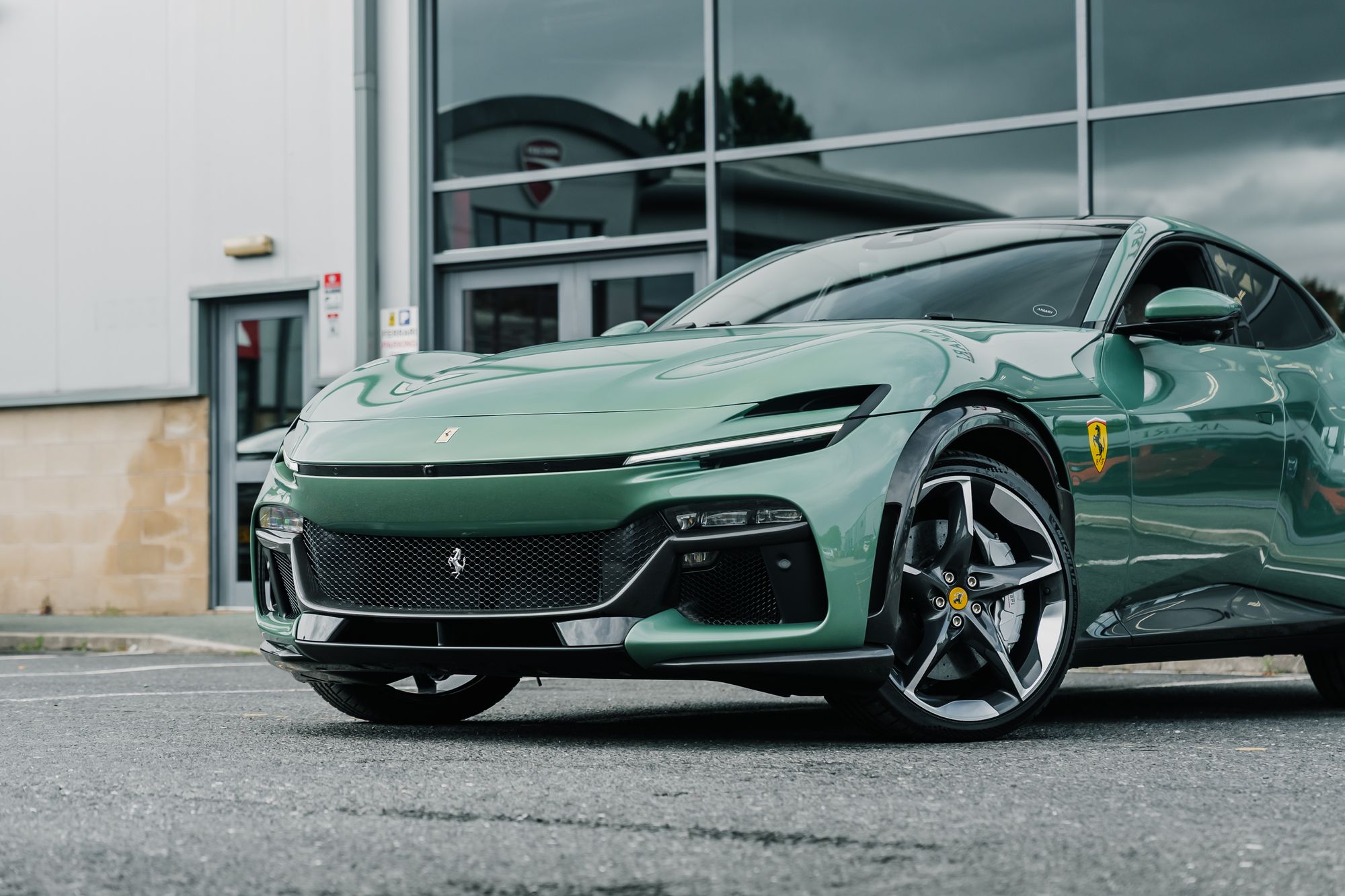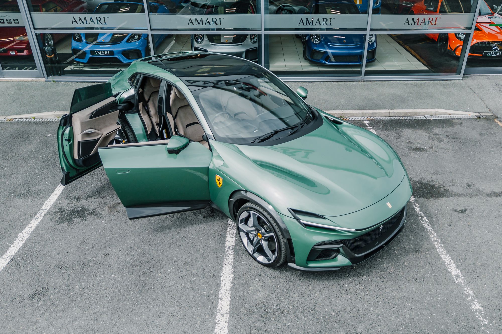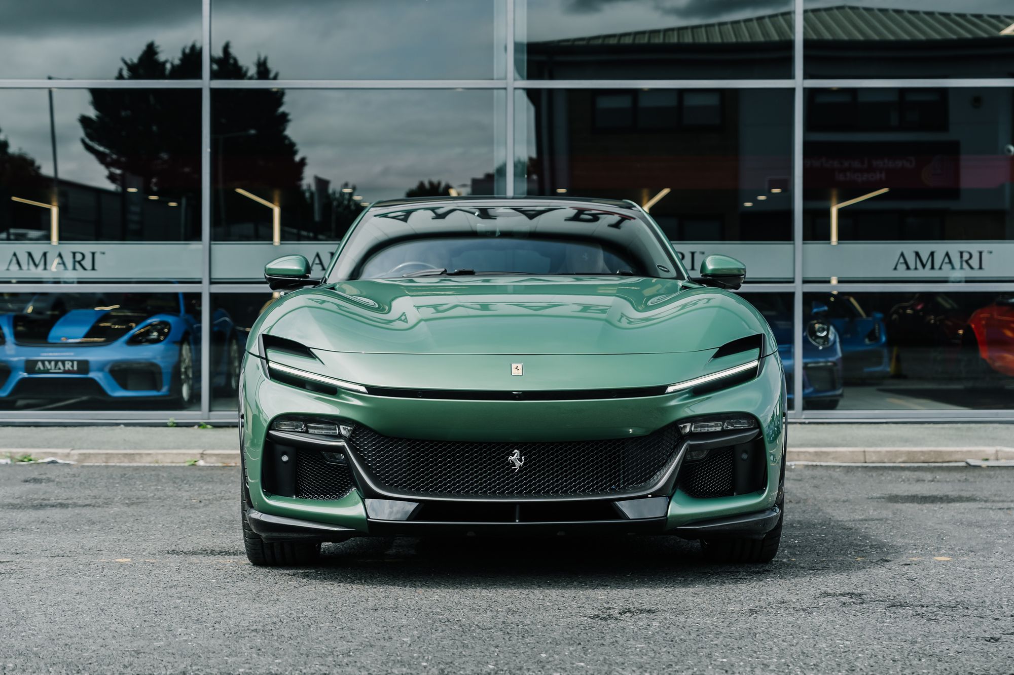 The 2024 Ferrari Purosangue represents Ferrari's first SUV, blending high-performance capability with the practicality of a luxury crossover. Powered by a 6.5-litre V12 engine, it produces over 700 bhp, allowing it to achieve supercar-like performance while offering spaciousness and all-wheel drive. The Purosangue combines Ferrari’s signature racing heritage with everyday usability, featuring cutting-edge technology, carbon fibre components, and a luxurious interior. This model has a stunning exterior in Verde Dora, paired with a Tortora Alcantara interior and carbon fibre accents, enhancing its exclusivity and premium feel.