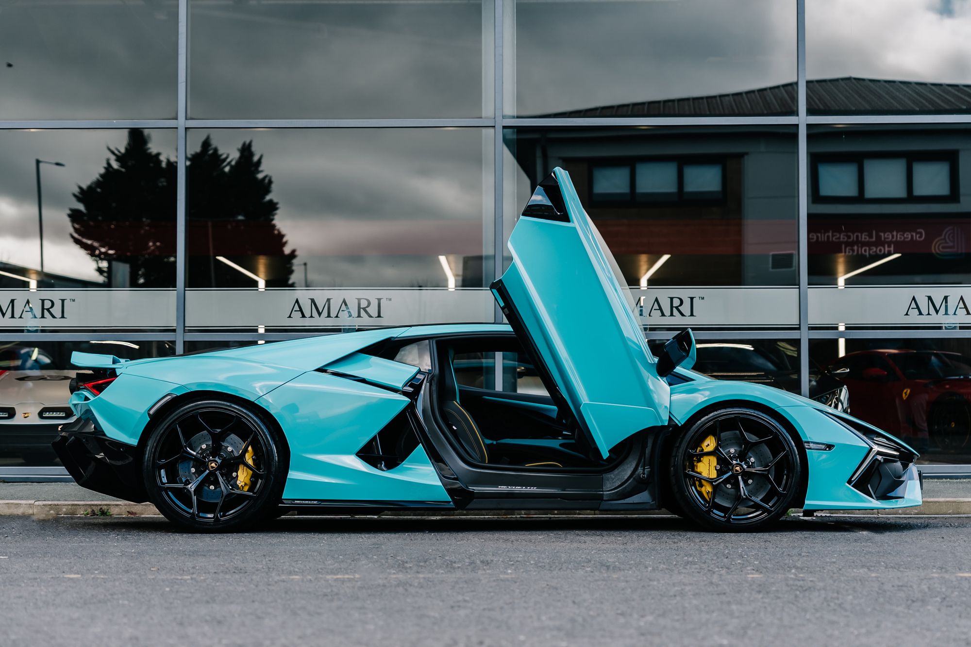 This 2025 Lamborghini Revuelto, finished in Blu Symi, is an outstanding example of Lamborghini’s first plug-in hybrid V12 supercar. With just 50 miles, it features over £83,000 in optional extras, including Sonus Faber Premium Sound System, Ad Personam sports seats, Steering Wheel Carbon Package, and 21"/22" forged wheels. It also comes with Lamborghini’s 5-Year Warranty.