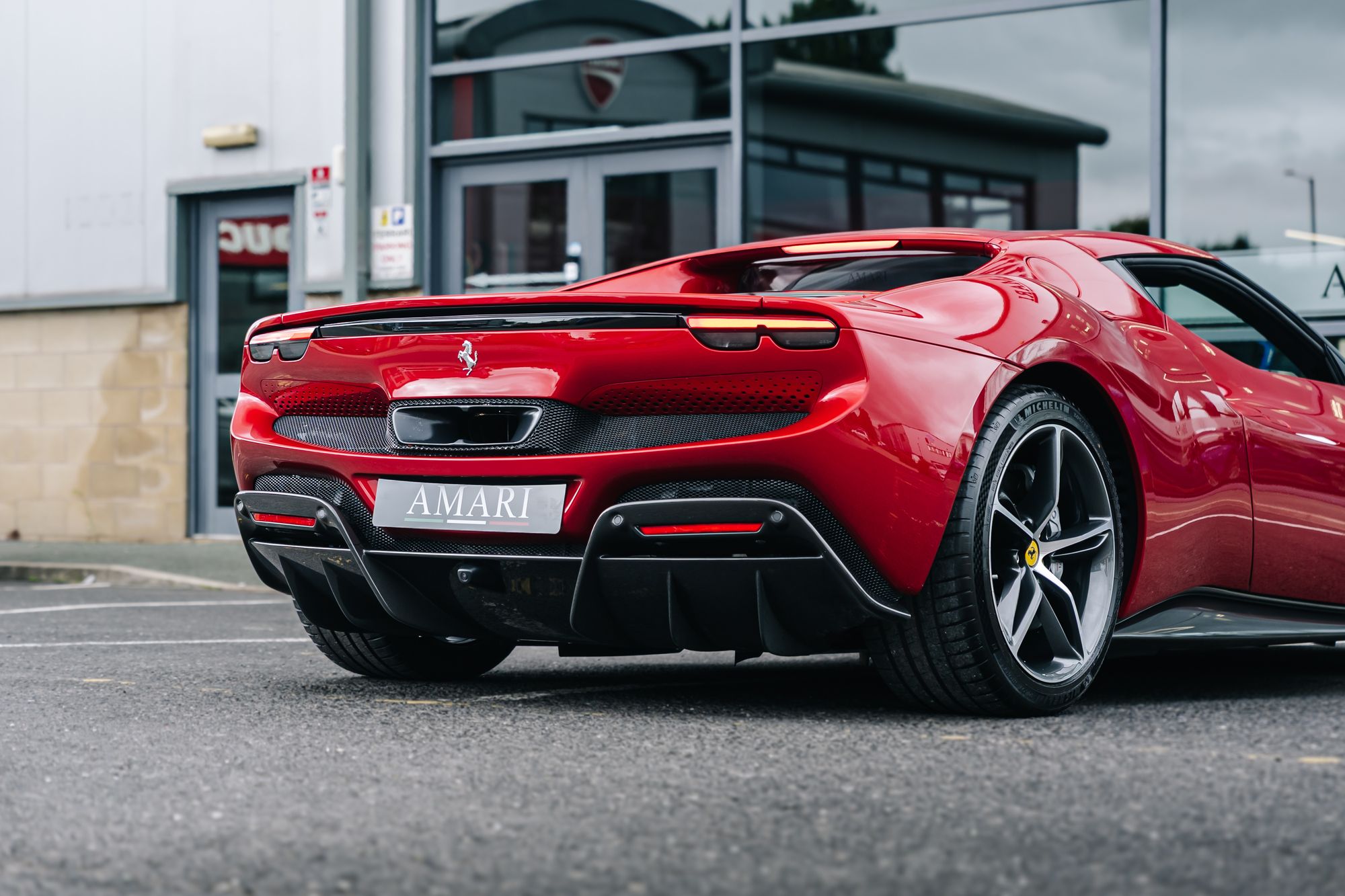 This pristine 2024 Ferrari 296 GTB in Rosso Imola presents an exceptionally vivid and exclusive expression of Ferrari’s next‑generation hybrid supercar. With just delivery mileage on the clock—under 100 miles—it remains essentially new and thoroughly turnkey. The Rosso Imola exterior offers an eye-catching twist on the classic Ferrari red palette, paired with black ceramic exhaust outlets, forged diamond‑finish wheels, and Scuderia Ferrari shield badges that hint at the racetrack pedigree. Inside, the cabin delivers a driver‑focused experience with Nero leather and carbon‑fibre detailing, including the racing‑style steering wheel with LED shift lights and Daytona‑style seats adorned with embroidered Cavallino motifs.