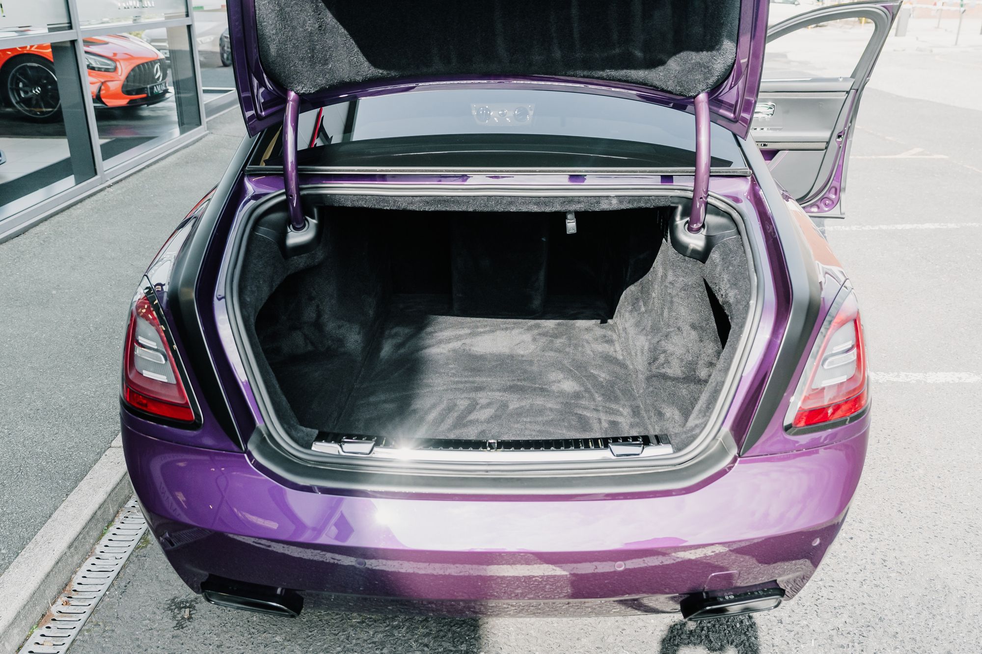 The exterior of the Ghost Black Badge features a sleek and aggressive design with blacked-out exterior trim, a darkened Spirit of Ecstasy hood ornament, and 21-inch carbon alloy composite wheels. The interior is just as impressive, with handcrafted leather upholstery, carbon fiber accents, and a bespoke audio system. The rear seats can be configured to include a lounge seat or individual seats with a center console, providing maximum comfort and convenience for the passengers. The Ghost Black Badge also features advanced technology, including a heads-up display, night vision, and a digital instrument cluster, making it a truly modern and sophisticated vehicle.