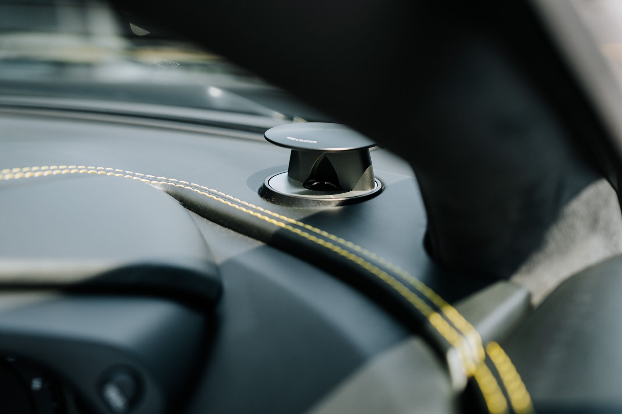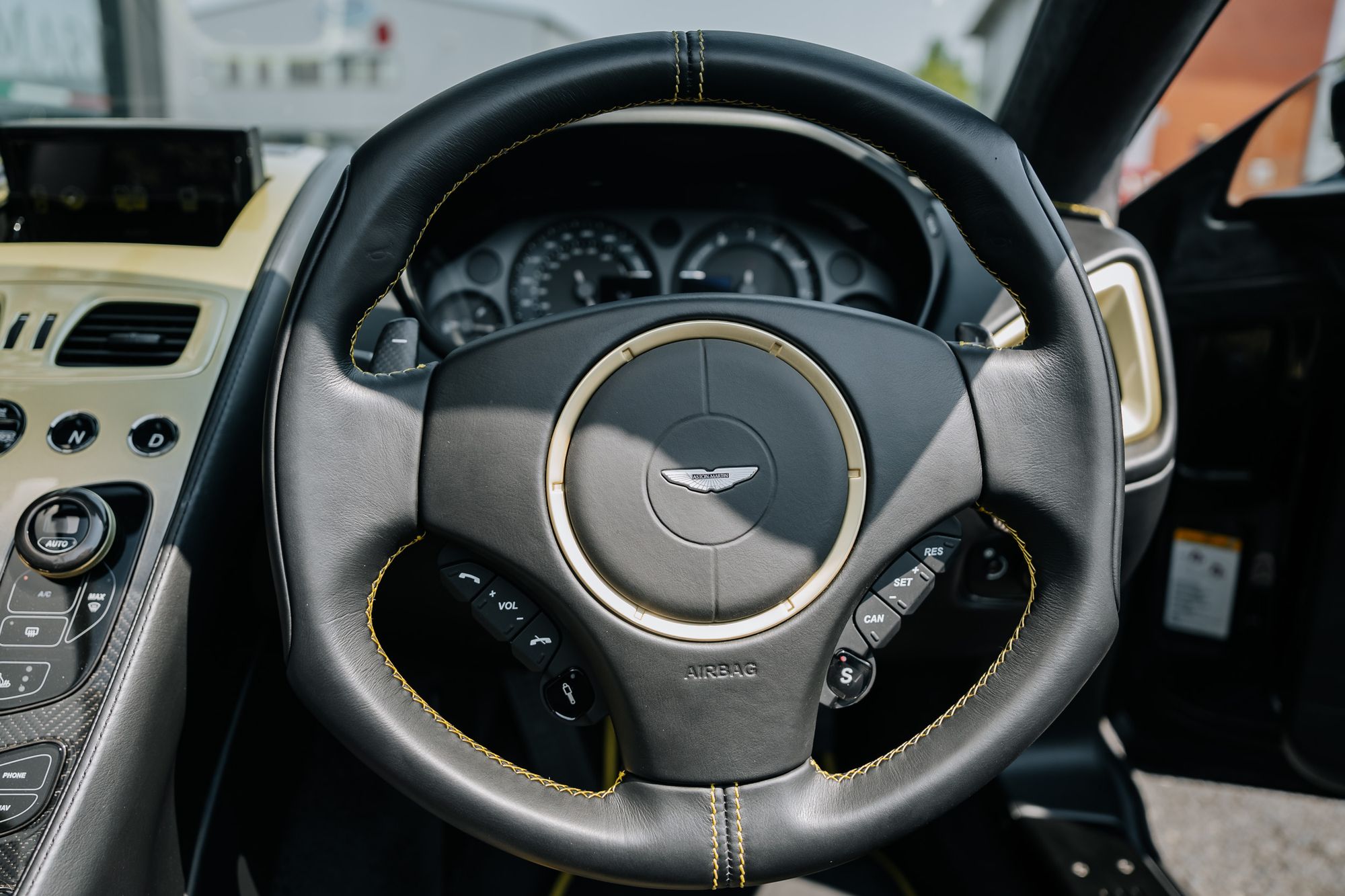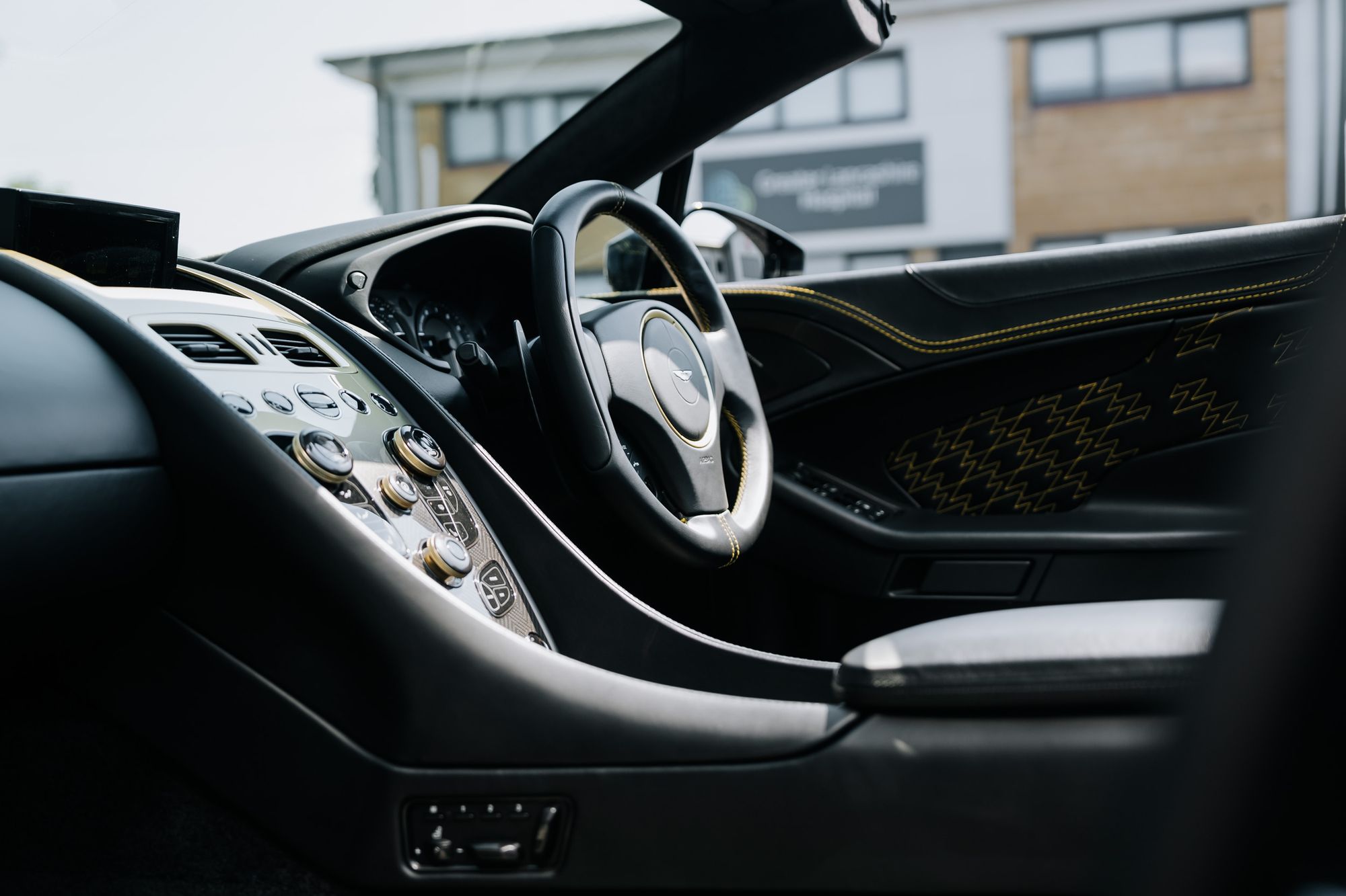 Open the iconic 'swan wing' doors and prepare to be enthralled. A crystal glass ECU (Emotional Control Unit) graces the start button, setting the stage for a truly remarkable experience. Engage the engine, and the quad tailpipe stainless steel exhaust system comes alive. From the initial rumbles and burbles on start-up to the symphony that unfolds when the valves open at around 3500rpm, this Vanquish Zagato Volante produces one of the most exquisite road-going exhaust notes ever heard.