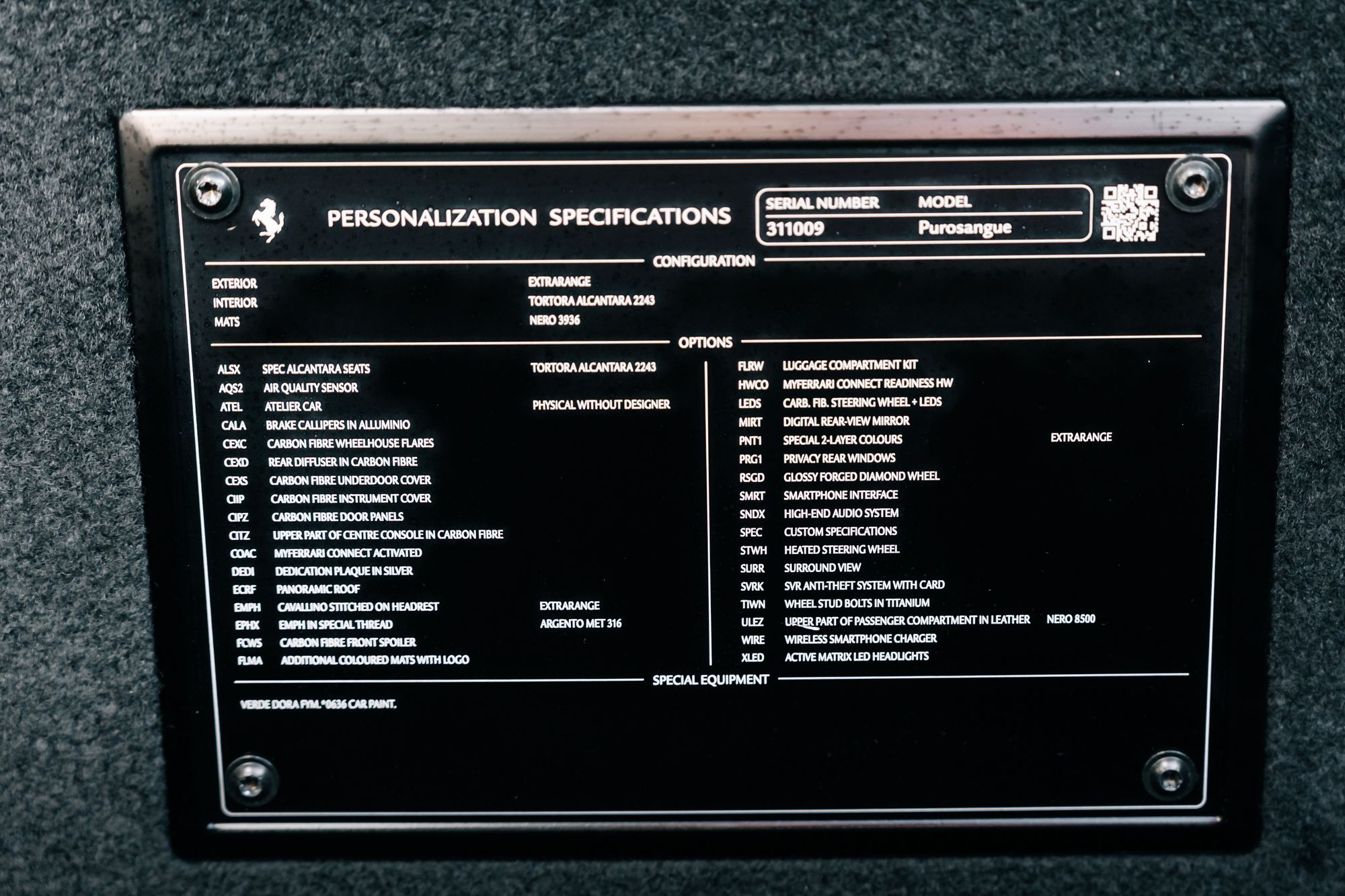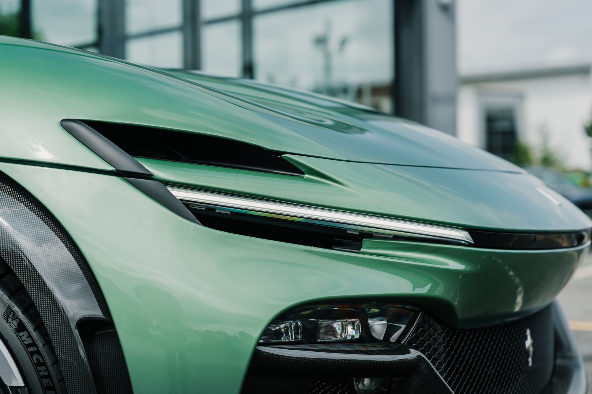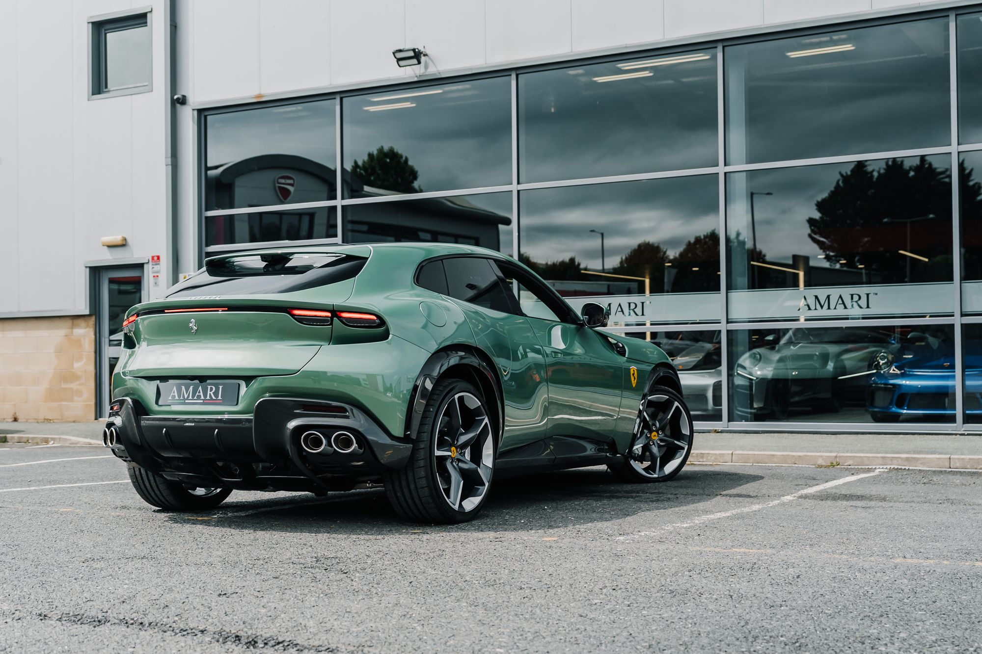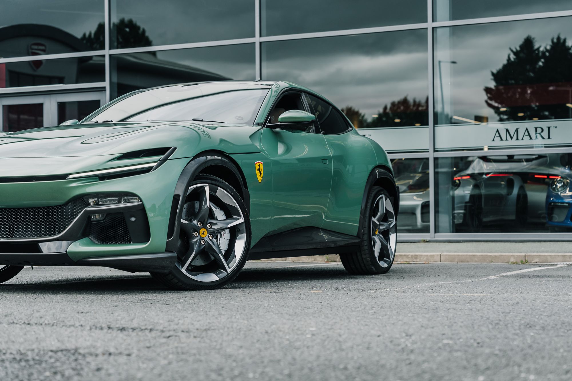 The 2024 Ferrari Purosangue represents Ferrari's first SUV, blending high-performance capability with the practicality of a luxury crossover. Powered by a 6.5-litre V12 engine, it produces over 700 bhp, allowing it to achieve supercar-like performance while offering spaciousness and all-wheel drive. The Purosangue combines Ferrari’s signature racing heritage with everyday usability, featuring cutting-edge technology, carbon fibre components, and a luxurious interior. This model has a stunning exterior in Verde Dora, paired with a Tortora Alcantara interior and carbon fibre accents, enhancing its exclusivity and premium feel.